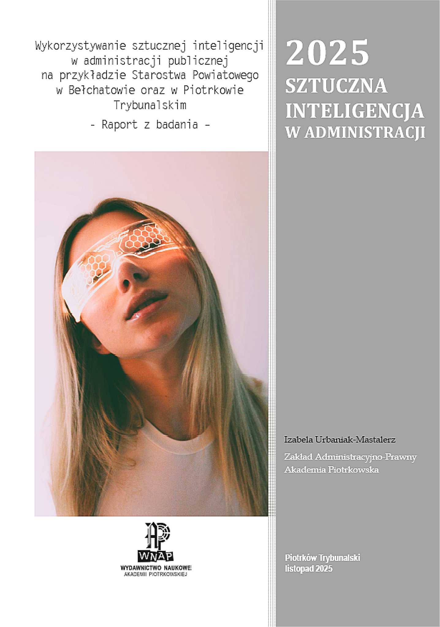 Raport stanowi odpowiedź na współczesne wyzwania społeczeństwa i zawiera analizę uzyskanych wyników przeprowadzonego badania ankietowego o charakterze lokalnym oraz ogólnopolskim w zakresie wykorzystywania sztucznej inteligencji w administracji publicznej. Badanie to wykonane było w ramach badań statutowych Akademii Piotrkowskiej za 2024 r.